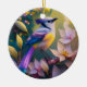 Violet Tufted Yellow Breasted Fantasy Bird Ceramic Ornament
