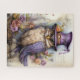 Violet Visionary: Whimsical Owl with Glasses Jigsaw Puzzle