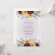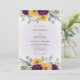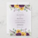 This design features a striking contrast of deep violet roses and sun-drenched yellow dahlias. Delicate sprigs of lavender and dusty green eucalyptus leaves provide a lush, botanical aesthetic. The watercolor artwork creates a vibrant yet elegant atmosphere suitable for any season. The rich color palette brings a sophisticated natural beauty to the artwork.