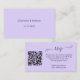 Personalise and add your names, wedding website url for your own QR code and text. Violet, lavender coloured background, black text.