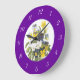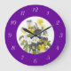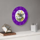 A wall clock with beautiful blooming purple, yellow and blue violets and pansy flowers from a vintage botanical painting on a purple background with white vintage numbers. Click Customise It to add your name or message, change background colours and more.
