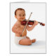 A beautiful, bright eyed baby sits upright and plays a violin.