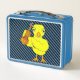 This is a standard metal lunchbox that appears to work just fine. We designed this box ourselves with an uploaded photo and custom text on the front and back. It looks absolutely beautiful except the front of the lunchbox is not centered like it shows in the photo. The print borders don't align with the inset flat part of the box where the preview photo online showed it perfectly centered in there. The back looks nice and centered though.