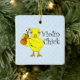 Violin chick in curly text with a cute yellow chick holding a violin is a funny gift design for string musicians, violin teachers and students in orchestra at Christmas.