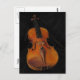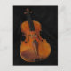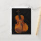 This postcard presents a classical still life of an elegant old violin. This graceful instrument is essentially a hollow wooden box with rounded ends, two graceful f holes and a narrow centre. The four sets of strings extend from a string holder at the bottom of the body over a raised bridge to the end of the narrow neck, or fingerboard where the four strings are inserted into a pegbox and are held there with pegs. The pegs are used to tune the violin. When the bow is drawn across the strings on the body of the violin it produces incredible, magical music! The gorgeous golden brown, almost orange tones are set off by graceful black velvet fabric.