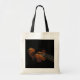This tote bag presents a classical still life of an elegant old violin scroll. This graceful instrument is essentially a hollow wooden box with rounded ends, two graceful f holes and a narrow centre. The four sets of strings extend from a string holder at the bottom of the body over a raised bridge to the end of the narrow neck, or fingerboard where the four strings are inserted into a pegbox and are held there with pegs. The pegs are used to tune the violin. When the bow is drawn across the strings on the body of the violin it produces incredible, magical music! The gorgeous golden brown, almost orange tones are set off by a black background.