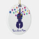 Add your own name to personalise this ceramic christmas ornament, featuring a blue violin with a burst of stars.