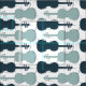 Violin themed fabric in shades of blue.