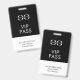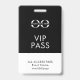 Template black and white VIP all access Event Badge. Replace with your own logo, event name and date. Simple and stylish.