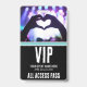 VIP Ticket All Access Special Event Badge. Great for concerts, large special events like conferences, speakers, and can even work for a birthday party. Features a cute play on a concert venue with someone holding their hands into a heart shadow. In the background is a mix of purple, blue, and white colouring from the concert lights. There is a blue stripe, but you can change that to anything. At bottom is a bold font with VIP, the event name, date, and 'All Access Pass'. You can change all of the text information and colours of this badge. You can even use a different photo if you want.