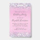A unique birthday party invitation that also serves as a badge for guests to wear at the party and keep as a souvenir party favour. This pretty design features sparkly holographic purple, pink and silver faux glitter confetti on a pink background, her name in a soft grey trendy script and "VIP All Access Pass" on the top. On the reverse side, personalise the birthday party invitation.