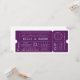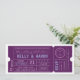 Bold fonts decorate this vintage inspired ticket. Perfect for any event hosted in a historic union station or theatre. Add in your names, venue information and wedding date to announce your big day in style! To further customise (changing fonts and/or colours) click the orange 'customise it' button, above. Design is shown in rich shades of purple: plum purple, pastel lilac purple and periwinkle.