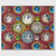 Elegant Renaissance Florentine masterpieces from Bottega della Robbia, red yellow brown green floral with 3D blue sapphire gem stones ,classic,vibrant Renaissance fine art ,masterpiece from Bottega della Robbia ( Florence - Italy ) . Cool design easy to customise with your family photographs.