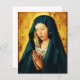 The plain and dark background contrasts with the Virgin's radiant bowed head and the white headdress covering it, and her hands are gently closed together