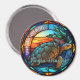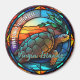 Cute faux stained glass tropical sea turtle scene, personalizable trip souvenir. Great for Christmas and family vacation keepsake, or honeymoon keepsake.