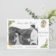 Design front features the photo you provide as main image with date displayed below in two ways. A beautiful image of Our Lady of Fatima appears at top right and is bordered by the image of delicate pink and white roses. The picture of golden wedding rings joined together is displayed at bottom left corner of photo. Customisable heading is featured in an elegant Nuptial font at top. Bordering the top left and bottom right corners are the images of roses and greenery. Names of Bride & Groom are displayed just below photo in same Nuptial font. Keeping with the traditional format for a Save the Date card, name of city and state of wedding also appear at bottom.