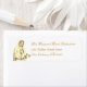 Design features the image of Our Lady of Fatima on left, with the likeness of two rosebuds beside image. Return address is displayed in a golden chestnut-coloured Nuptial font. Very elegant. All images in sepia.