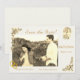Design front features the photo you provide as main image with date displayed below in two ways. A beautiful image of Our Lady of Fatima appears at top right and is bordered by the image of delicate pink and white roses. The picture of golden wedding rings joined together is displayed at bottom left corner of photo. Customisable heading is featured in an elegant Nuptial font at top. Bordering the top left and bottom right corners are the images of roses and greenery. Names of Bride & Groom are displayed just below photo in same Nuptial font. Keeping with the traditional format for a Save the Date card, name of city and state of wedding also appear at bottom. Background colour is featured as off-white. Also available in a variety of colours.