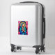 The stick looks amazing. Unfortunately, it would not stick on our suitcase as it was textured. When we found a non-textured (smooth) suitcase, the sticker stuck and looks great. The printing looked awesome.