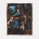 This religious artwork depicts the Virgin Mary with her arm around the infant Saint John the Baptist, who is holding a cross, adoring the infant Jesus as an Angel supports his back as they sit alongside a well.
