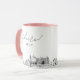 Virginia Beach wedding coffee mug. The design showcases a stunning skyline sketch with the ability to personalise with your name or the names of your bridesmaids, guests, or others. Easily update the mug size and colour to your liking.