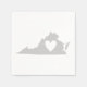 Featuring the outline silhouette map shape of the Old Dominion state of Virginia filled in with a solid grey background and a big heart cut out of the middle these Virginia heart napkins are great for sharing that Virginian love with your guests at the party.