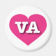 This magnet features a vibrant hot pink heart containing the bold, white, upper case letters VA, the official abbreviation of Virginia, the Old Dominian state.