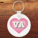 This key chain features a cool pink heart with a white-washed centre containing the bold, white, upper case letters VA, the official abbreviation for Virginia, the Old Dominion state.