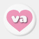 This magnet features a vibrant pink heart containing the bold, white, rounded, lower case letters va, a playful abbreviation for Virginia, the old Dominion state.
