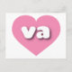 This postcard features a vibrant pink heart containing the bold, white, rounded lower case letters va, a playful abbreviation for the state of Virginia, the old dominion state. The reverse side of the postcard is blank, awaiting your handwritten sentiments or customised text.