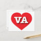 This postcard features a vibrant red heart containing the bold, white, upper case letters VA, the official abbreviation for Virginia, the Old Dominion state. The reverse side of the postcard is blank, awaiting your customised text or handwritten sentiments.