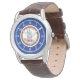 The watch looks really great! Very sharp and well done. The leather band is really nice, though for a man's watch I think it should be longer. Unfortunately, it isn't big enough for my husband's wrist but I will get a replacement because he is very excited to wear it!
