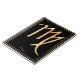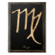 Stylised gold hammered Virgo astrology zodiac birthday symbol in a hand drawn gold double line frame. This notebook or dream journal or writing pad has Virgo script text, which can be personalised to narrate your own story.