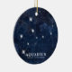 Virgo horoscope, starsign zodiac ornament, with the stars of the Virgo constellation (Virgo Dates: August 23-September 22). The Ornament is available in a number of sizes and colours, and can be personalised with your own dates / name. This beautiful subtle detail within the indigo blue background, and of course the stars themselves.