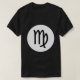Virgo symbol in black. NB This design can be customised the motif appears as a simple black symbol on light shirts, or as a black symbol in a white circle on dark shirts.