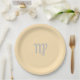 Paper plates with the Virgo Zodiac Symbol in Peach colour ( FFE5B4) background . Simple and trendy design by Alma Wad .