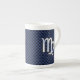 Virgo Zodiac Sign on Navy Blue Carbon Fibre Style Bone China Mug