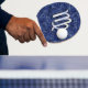 A Virgo Zodiac Sign on Navy Blue Digital Camouflage background. A modern urban racy design for a great custom gift idea.
