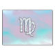 A Virgo Zodiac Sign on a mother of pearl nacre pink and blue print decor background. A modern fresh design for a great custom gift idea.