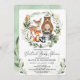 Elegant "virtual baby shower" invitation featuring adorable watercolor illustration of woodland animals and elegant botanical greenery in green and gold. The text fields are fully editable. You can change the wording to suit your event, e.g. birthday, baby shower / sprinkle, baptism, christening, naming day, etc