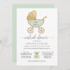 Virtual Baby Shower | Retro Carriage Green Gold Invitation