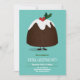 A virtual Christmas party holiday invitation featuring a smiling Christmas pudding cartoon on a teal background. The words are white and green, and can be customised.