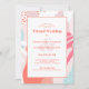Livestream virtual online wedding ceremony invitatoin design features modern abstract memphis pattern in colourful shades of coral,teal green, pink and white. Stylish script in living coral is arranged in a coordinating light coral border on a white background. A modern template for date and year complements the unique calligraphy design and the first and last names of the couple. Add in your details for date and time and point to your wedding website to provide your guests with technical details for your livestream event. The back of the card is solid light coral. Be sure to see the collection link on this page to view all of the matching items! Please direct questions or custom requests to invitationsuites@gmail.com.