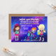 Calling all budding Pop Stars to your Virtual Rock Star birthday party when you can’t get together in person, with this colourful invitation featuring a GIrl Band on a starry stage background. Easily personalise text to your own details.