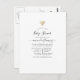 Simple black and white virtual baby shower postcard invitation featuring social media icons customisable to your specifics.