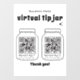 This personalizable virtual tip jar cling is a versatile product that empowers you to tailor your own tip collection experience. With the ability to insert your business name and two QR codes from your preferred payment apps, this sign enhances customer engagement and ease of use. Perfect for cafes, artists, performers, and service providers, the tip jar becomes a seamless digital transaction hub, allowing customers to show appreciation through quick and convenient payments. Elevate your brand, simplify transactions, and foster a sense of gratitude with this customisable tip jar sign.