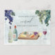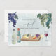 If you can't be together in person, then host a get-together with your friends using video! Watercolor wine and cheese party virtual invitation. This postcard features green and purple grapes with wine bottles, glass, and an assortment of gourmet cheeses. Personalise with your own information. There is also an in-person version available.