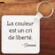 Ce porte-clé vibrant, tiré de la toile Carnaval, montre un visage abstrait aux couleurs éclatantes. L’œuvre rend hommage à l’expression libre avec la citation : "La couleur est un cri de liberté." Un accessoire fort et joyeux, pour les esprits créatifs et rebelles.