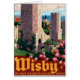 Restored and digitally enhanced vintage travel poster showing people entering and exiting Visby through a portal in the stone ring wall; a bouquet of roses decorates the border. Imperfections removed. Colours corrected. Image courtesy of Library of Congress.
