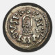 Human figure encircled by letters. Seventh century gold coin used by Visigoths in Spain.